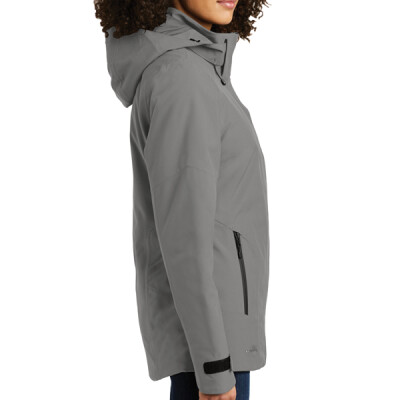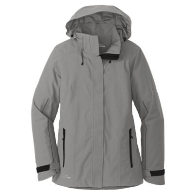 Built to outlast the elements, this fully seam-sealed technical jacket has exceptional 10K/10K fabric waterproof and breathability ratings thanks to exclusive WeatherEdge Plus technology. Exclusive StormRepel® durable water-repellent (DWR) coating adds extra exterior weather protection. Fully insulated, this jacket also provides long-lasting warmth and comfort when temps drop. Detachable, adjustable hood with locking drawcord, full-length exterior storm flap and ventilating pit zips. Princess seams. Welded front zippered pockets with waterproof zippers. Interior pocket with elastic to store goggles, hat and bulkier items. Adjustable tab cuffs with hook and loop closures. Adjustable locking drawcord hem. Decoration access pocket. Contrast WeatherEdge Plus logo heat transfer on left sleeve. Contrast Eddie Bauer logo heat transfer on right hem. Made of 100% polyester with durable water-repellent (DWR) coating and TPU film.