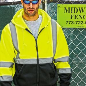 Unisex Hi-Vis Full-Zip Hooded Sweatshirt