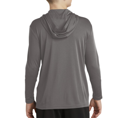 This lightweight hooded pullover locks in color and wicks moisture. It's versatile enough for year-round wear.