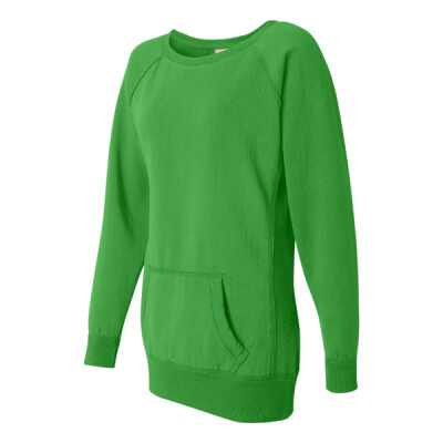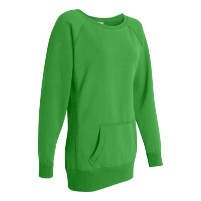 - Raw-edge seams on raglan shoulders, side gusset panels, pocket and waistband
